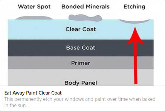Yes, there’s a certain level of foresight into keeping your car clean when you think about maintaining its price value but there’s actually more to it than meets the eye, literally. Take for instance water. Something as small and naturally occurring as rain drops can actually cause harm to the coating of your car. As rain water falls on the surface of your car it catches dirt particles. Once water evaporates it leaves behind the dirt and minerals in a concentrated area which you see as water marks or water spots. It may seem harmless but these marks can cause what is called etching.
